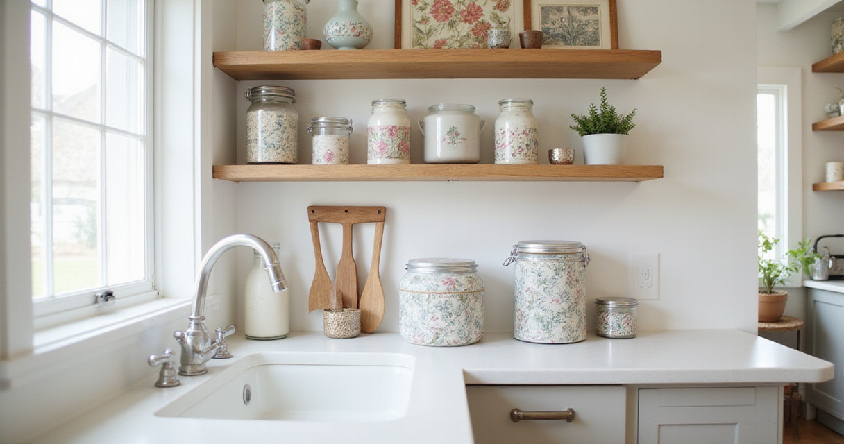 Scraps shine on small, defined areas. Consider lining drawer interiors, decorating the inside of cabinet doors (especially glass-fronted ones), creating small backsplash sections (protected with acrylic), or decorating storage containers and spice jars. You might even frame different wallpaper scraps as a coordinated gallery wall, tying together various elements of your kitchen design.